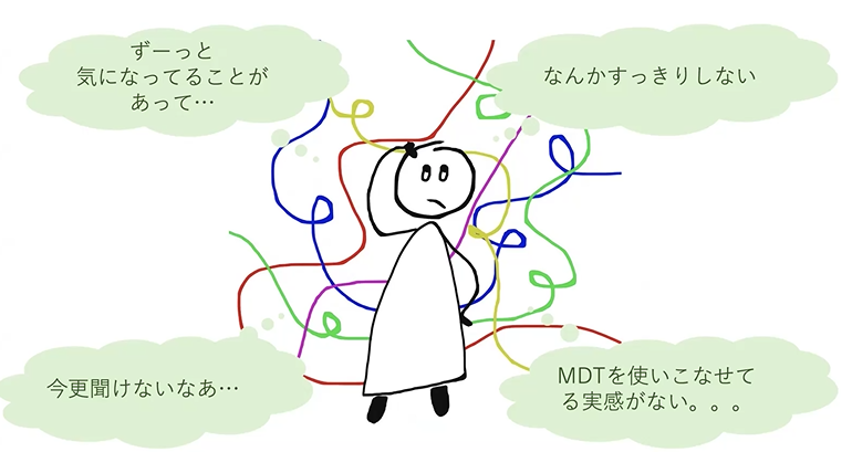 で、今回なんですけども、色々やっぱり伺ってると、実はずっと気になることがあってとか、MDTやっててなんかスッキリしないことがある、、、なんておっしゃる相談を受けてます。