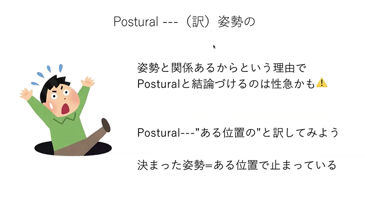 で、Posturalって言って直訳してしまうと、姿勢性のとか、姿勢と関連したっていう訳になってしまうので、