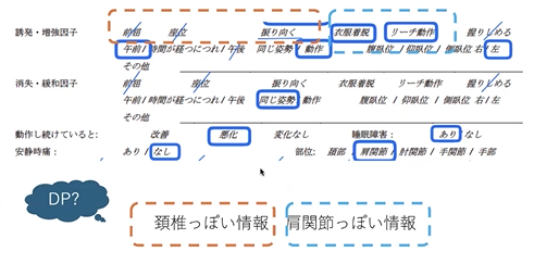 頚椎の要素があっても、例えばここの情報として、肩っぽいかなっていうのを特別に拾うための項目っていうのが、この着脱とリーチだっていうことで、、、だそうです。