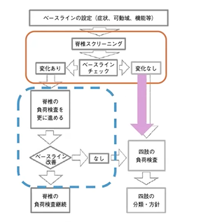 ちょっとずるい言い方かもしれないんですけども、四肢の負荷検査で変わんないんだったら、じゃあもしかしたら脊椎かもなっていう戻りもあるので、そこら辺こだわらずにね、あまりにも微々たる変化だけだったら、四肢に行ってもいいんじゃないかっていうフローもあります。