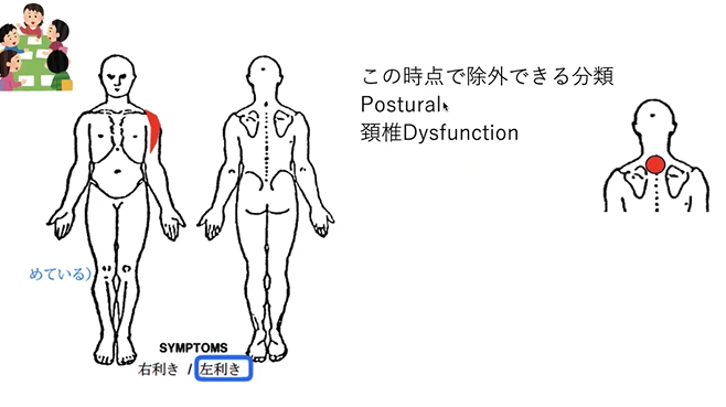 #で、考えられる分類っていうと、頸椎のDerangement,肩関節Derangement,この辺はまだ除外できないでよろしいですか。