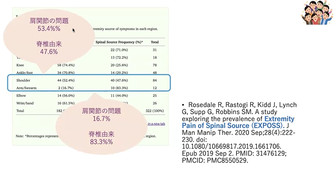 肩の症状の方の半分が、半分近くやっぱ脊椎由来であるんだよね。