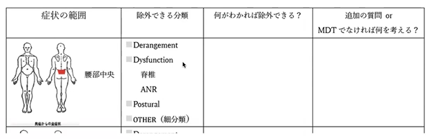 安静にしてても痛いのよっていわれたら、Dysfunction、どんどん、どんどんとね、うん、除外してって、DerangementのDPの探索のために集中するっていう感じになってくるかと思います。