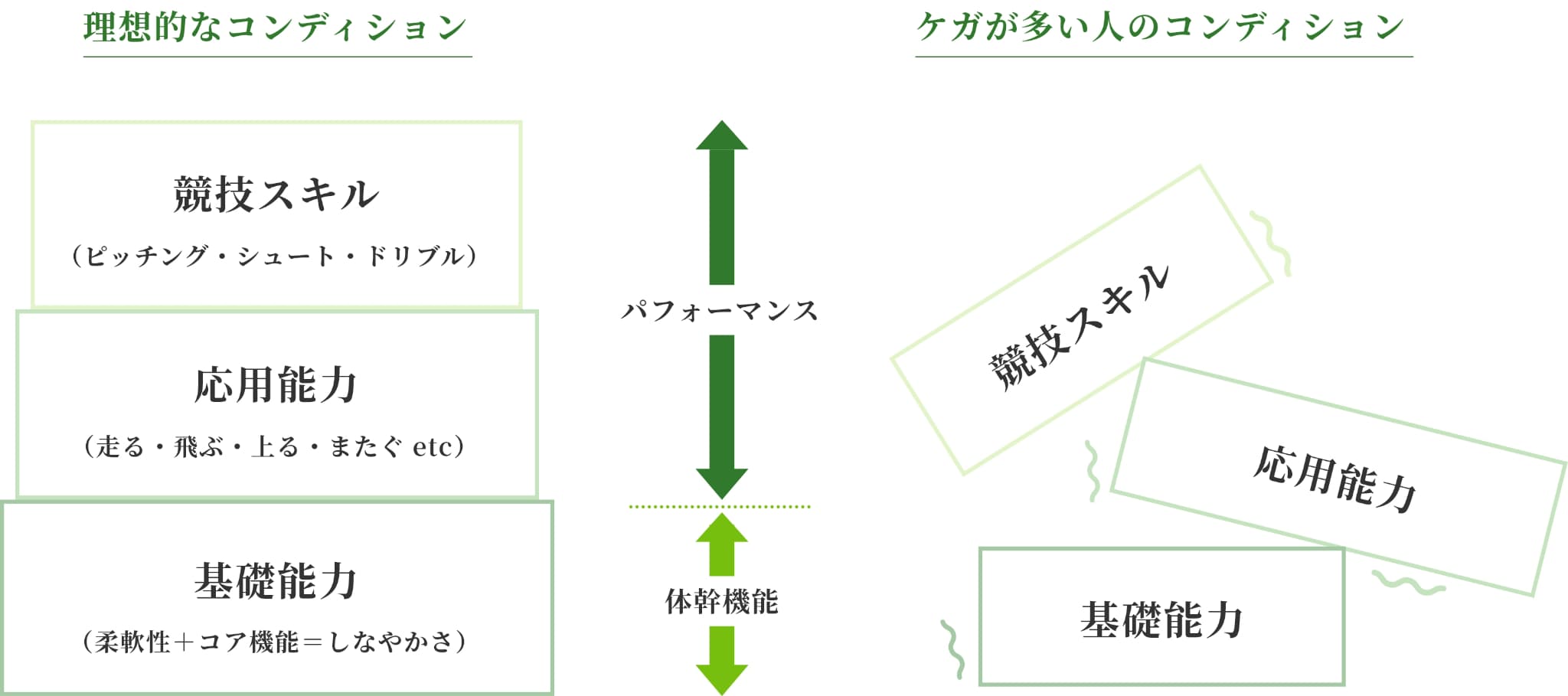 さらに、無理やりパフォーマンスあげる練習ばかり行うことで故障が発生してしまうのです。